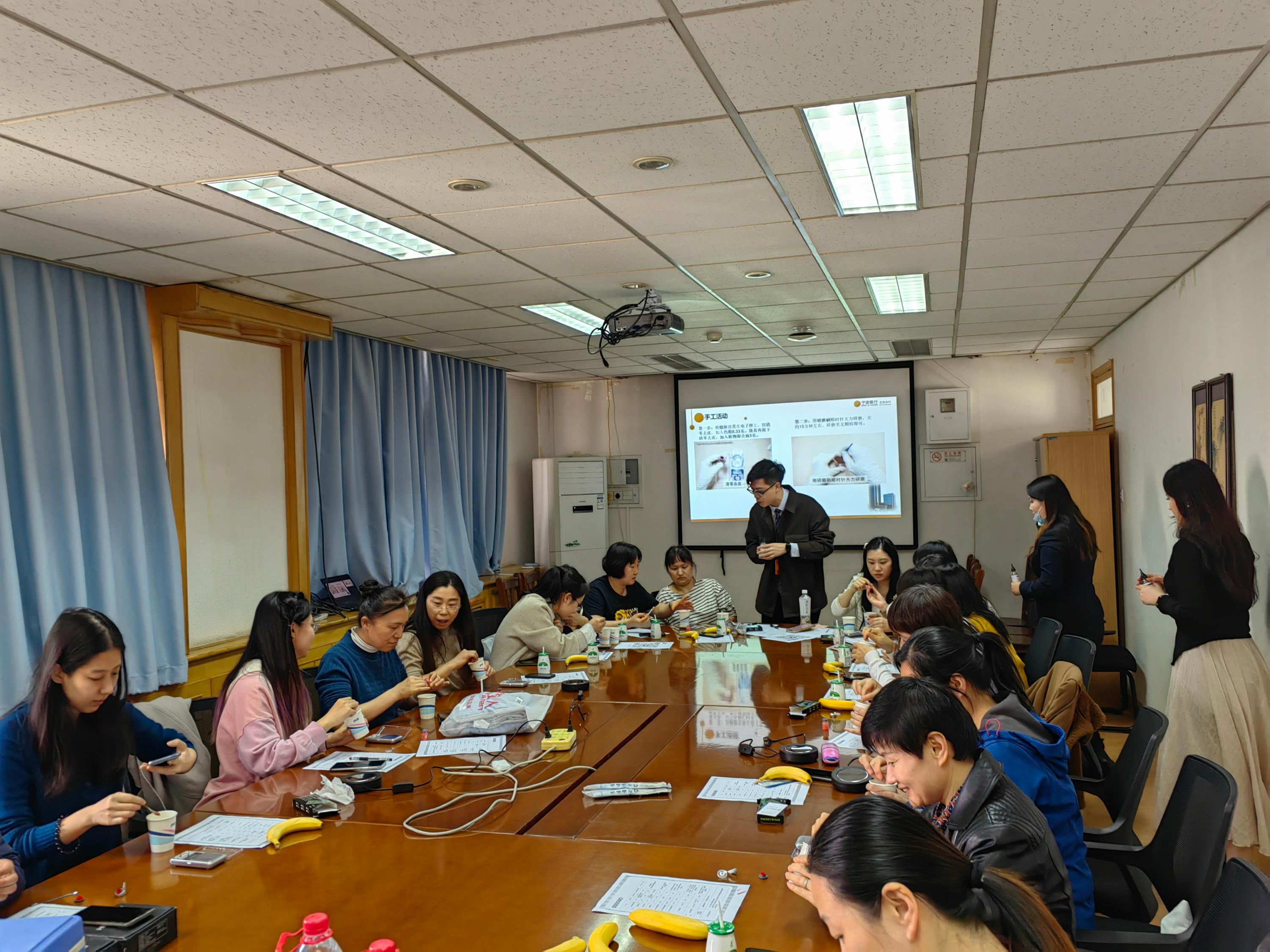 口红是每位爱美的女老师们都拥有和喜爱的物品,怎样自己做出一管口红是大家非常想了解和尝试的。工作人员讲解了过程之后,老师们开始选取自己喜欢的口红颜色进入制作过程。