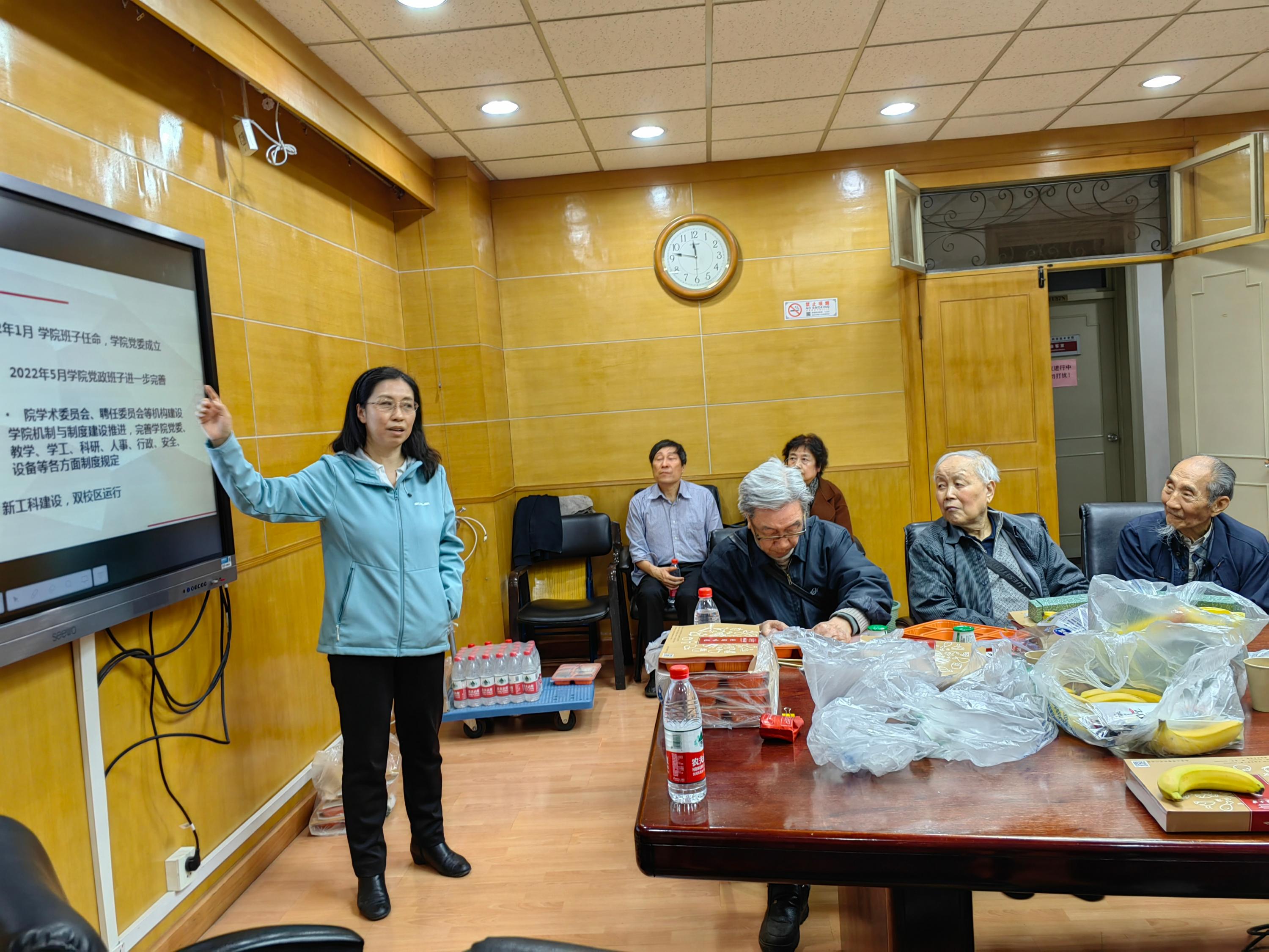 的事业发展、党建工作、师生思想政治工作和统战工作四个方面给老师们介绍了最新情况,使大家对近几年学院的总体状况有了进一步了解。离退休支部支委王晶云老师给大家介绍了成人影片