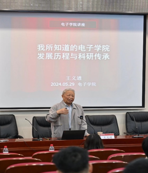 全体师生党员向王义遒老师表达了最诚挚的感谢。今年是学校的“学科质量年”,学院党委以学科“传承”指导思想为指引,以“传承电子学人精神,勇攀学科发展高峰”为主题举办系列活动,以学科发展历史为抓手,梳理学院代表性成果、代表性学者事迹,讲好电子学科故事、电子学人故事,传承电子学人立德树人的教育家精神、勇攀高峰的科学家精神。她希望全院师生党员强化纪律意识,扎实开展党纪学习教育;增强责任感和使命感,传承成人影片