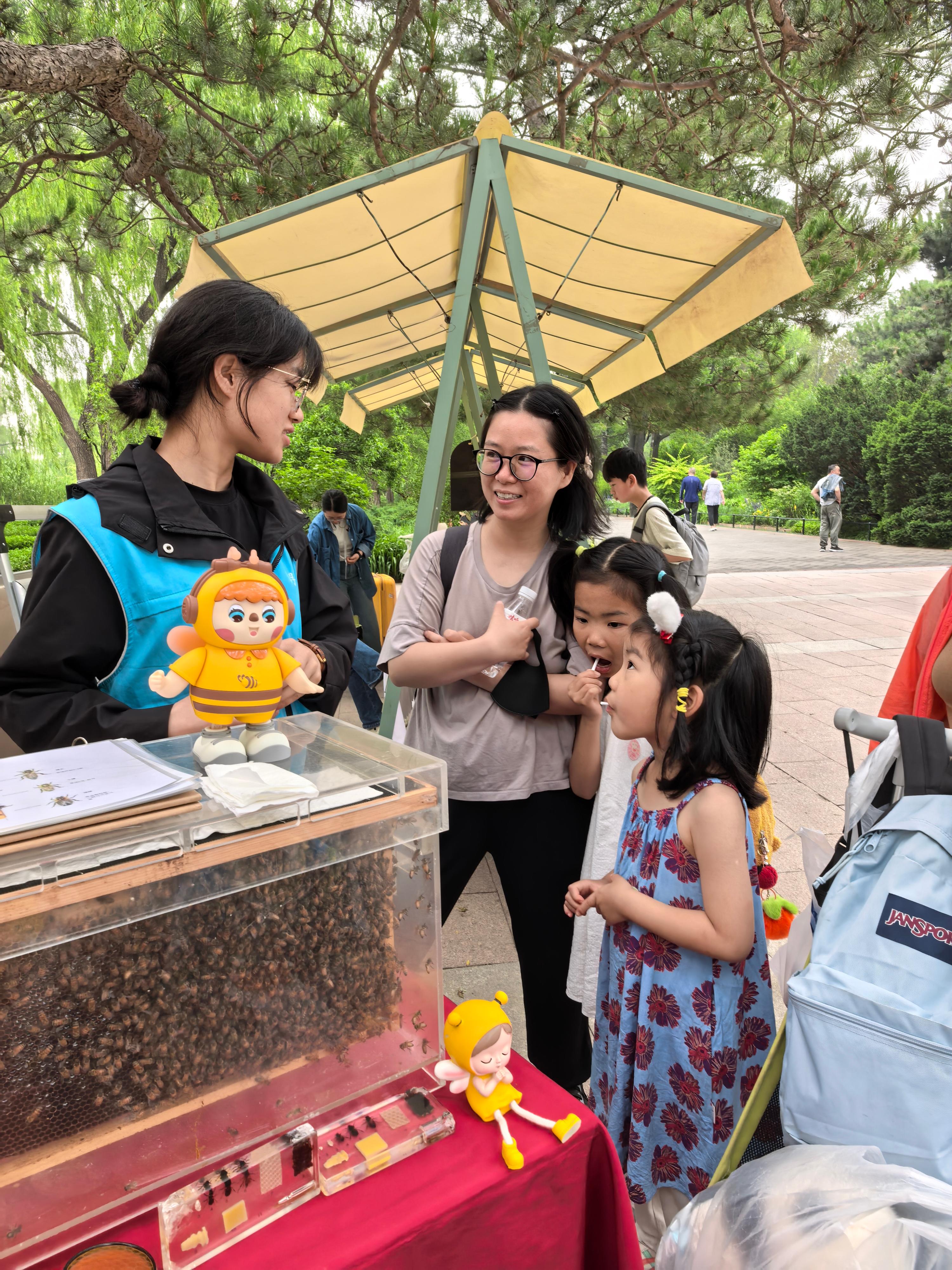 继续向前,大家一边走一边欣赏着路边的各色植物。植物园把它们都标上了名字,有很多不算常见的植物。大家一边走,一边学习。路边还有卖花环的、带着蜂巢展示的,大家好奇地围拢过来观看着。