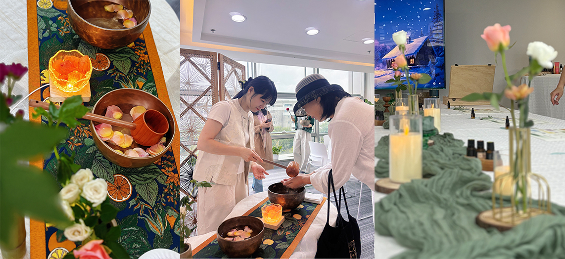 甫出电梯,一缕淡雅馨香便悠然飘来,引领着老师们循香而至。活动入口处,有香&自在闻香工作室精心准备的玫瑰花瓣净手水散发着怡人香气,老师们在沁人心脾的花香中净手入场,开启了这段独特的感官体验。