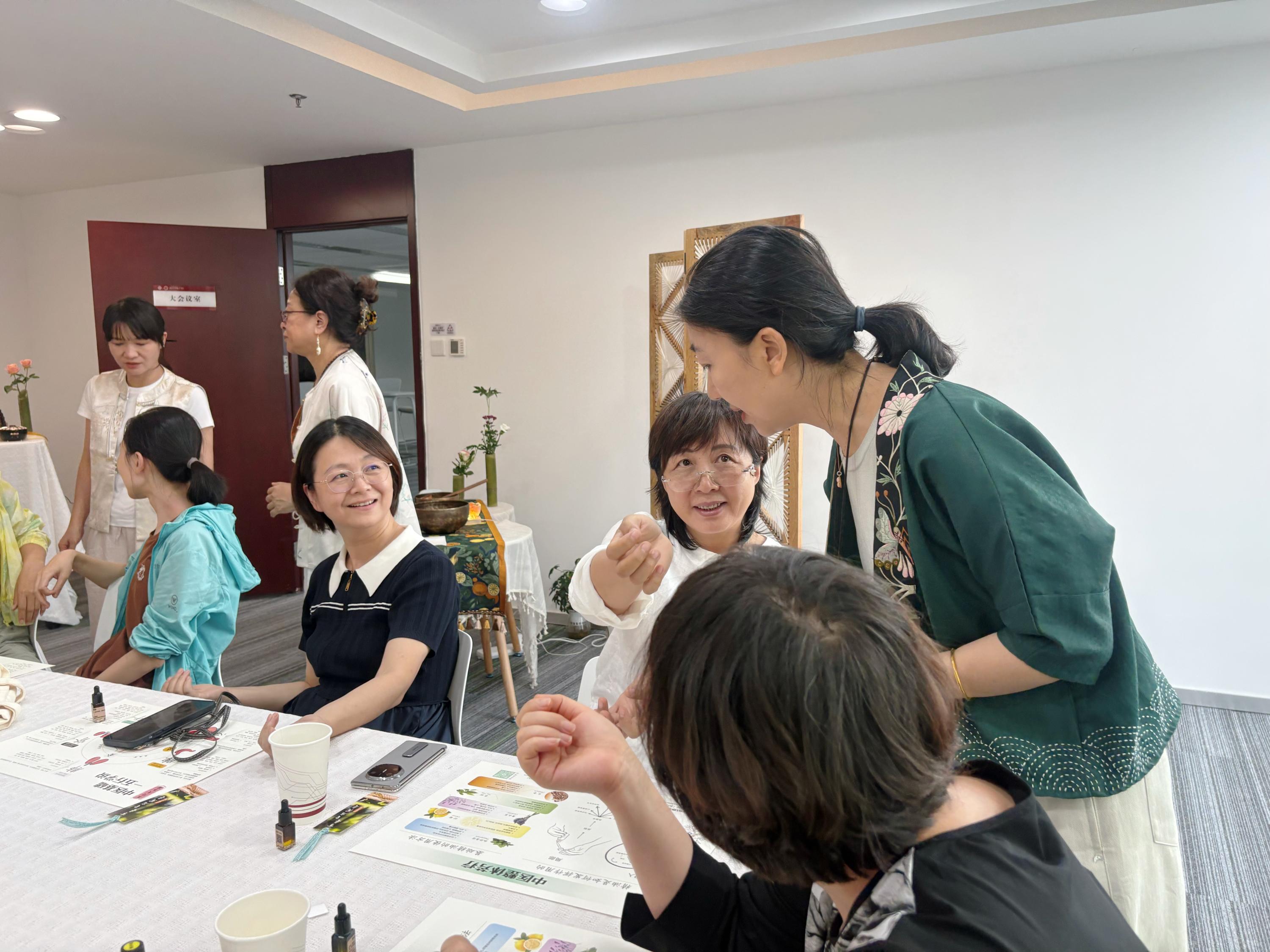 活动特别设置了互动环节,讲师分发了特调“仕女精油”。令人称奇的是,同一款精油在不同使用者腕间竟散发出迥异的香气。讲师解释,这正体现了每个人独特的体质特征,精油会与个人身体状态产生奇妙反应。试闻过程中,讲师还说明了对某种气味的特殊排斥可能反映出相应身体状况,这种互动体验让老师们倍感新奇。