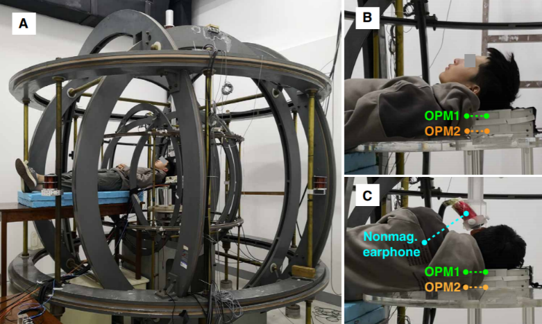 电子学系郭弘教授团队在基于原子磁力仪的无磁屏蔽人脑磁图测量系统的研制中取得重要进展