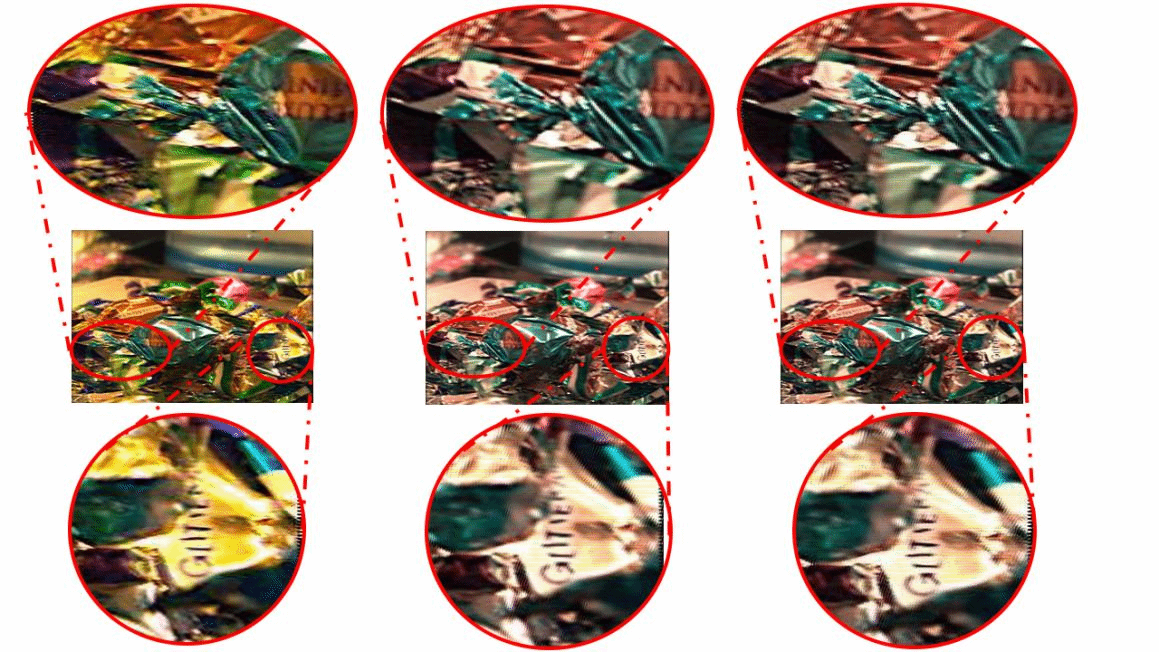 近日,成人影片 杨光临副教授课题组在相关研究中取得重要进展。他们针对目前已有的柱状光栅的视点排布计算原理,在制作立体合成图的过程中提出了一种基于超分辨抗混叠的多视点裸眼三维图像合成方法,可以提升立体合成图的信噪比,有效地改善立体合成图的显示质量。首先,使用WDSR(宽激活深度残差网络超分辨)算法部分取代传统插值算法,将原视点图放缩到目标合成图的分辨率大小。由于WDSR算法只能将图像整数倍放大,所以在放缩图像中将结合使用传统插值算法,将原图放缩到目标合成图大小。然后根据柱状光栅的多视点子像素映射关系,计算得到多视点子像素映射表。再根据子像素映射表制作各视点蒙板,利用蒙板加速立体图的合成速度,把放缩后的各视点视图的一部分重新排列组合,最后可以得到比使用传统插值算法效果更好的立体合成图,降低了立体合成图的性噪比,改善了立体合成图的显示质量,尤其是对图像细节有很高的保真度。实验效果如下所示: