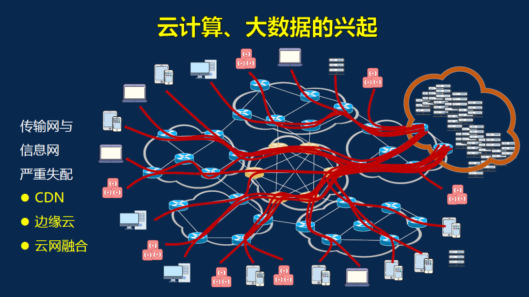 于全院士从互联网诞生开始,依次介绍了互联网的基因与特点、万维网的诞生,以及移动互联网的诞生。针对未来网络的万物智联、立体化组网和个性化融合业务等需求,未来新型网络架构设计需要解决网络的扩展性、移动性、可用性、安全性、可管性和经济性等核心问题。随着云计算、物联网等技术的兴起,传统互联网的OTT模式越来越不堪负重,传输网和信息网越来越难以适配业务需求。内容分发网、边缘计算、云网融合等新兴技术的提出都是为了弥补OTT模式的不足。但是这些并没有从根本上改变双重网逻辑分离的本质。