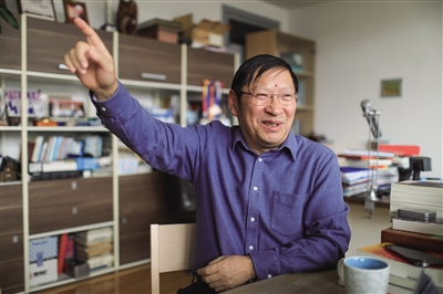 东南门,右手边第一栋楼上“逸夫苑”三个大字跳入视野。彭练矛的办公室就在这里。一整面墙都是书,不少是外文的,“国家自然科学二等奖”“2011年度中国科学十大进展”等多个金色奖牌随意地摆放其间。