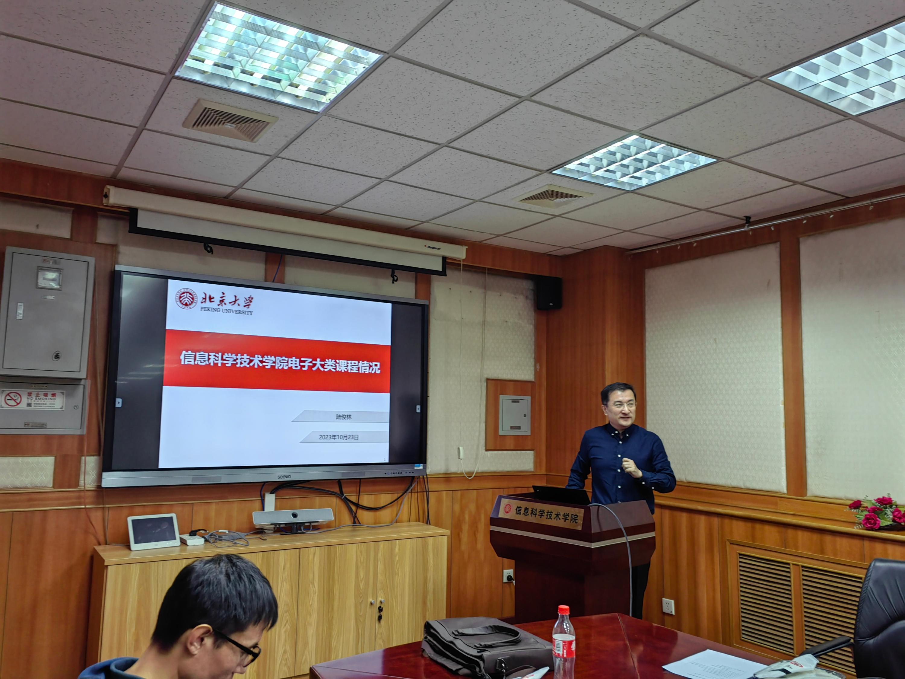 信息科学技术学院陆俊林副院长则为老师们重点介绍了信科电子类课程本科教学的课程体系和教学情况。他说青年教师们拥有最新的成果、最有活力的思想,可以让学生们更好地了解科研方向;还为各位老师送上了信息科学技术学院本科生方向的培养方案手册,里面有信科详细的课程设置和课程要求。