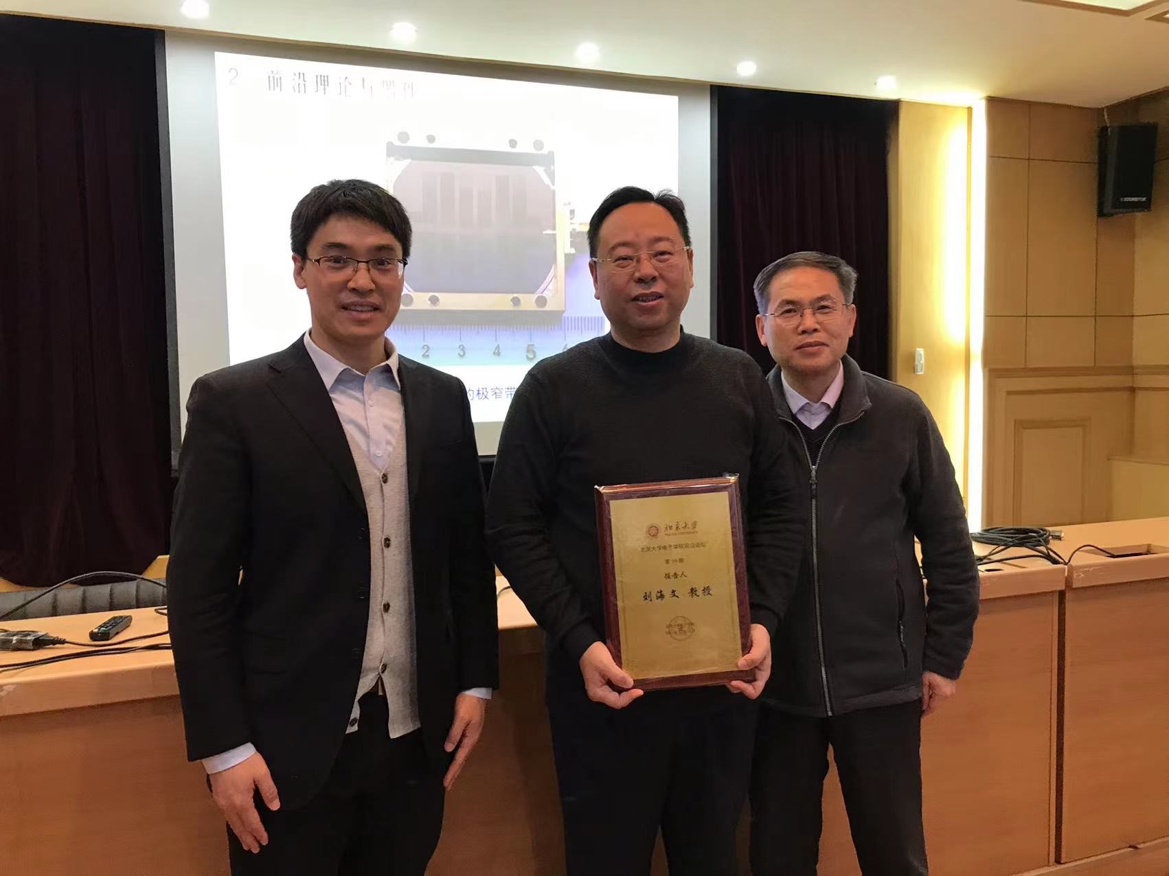 最后,在互动环节刘教授与在场师生展开了深入讨论,并对同学们提出的问题进行了详尽解答。刘教授针对基于3D打印实现超导接收机和天线阵列设计和加工中涉及的表面粗糙度处理问题进行了细致而深入的讲解。此外,刘教授还分享了如何解决电磁仿真软件和计算软件之间的联动难题。讲座结束后,成人影片 夏明耀教授为刘海文教授颁发了成人影片 前沿论坛纪念牌并合影留念。