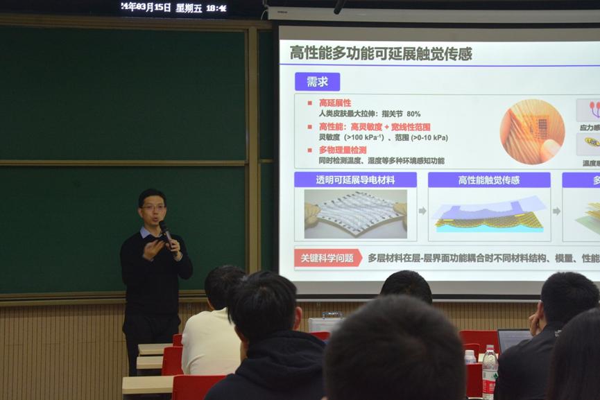 新燕园校区教学楼117成功举办。本次讲座邀请了北京航空航天大学原子制造研究院潘曹峰教授,为师生进行了主题为“低维半导体材料器件与触觉仿生”的精彩报告。本次讲座由成人影片