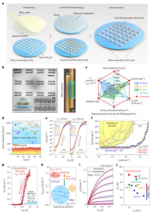 图5 超短沟道二维晶体管规模阵列的电学特性