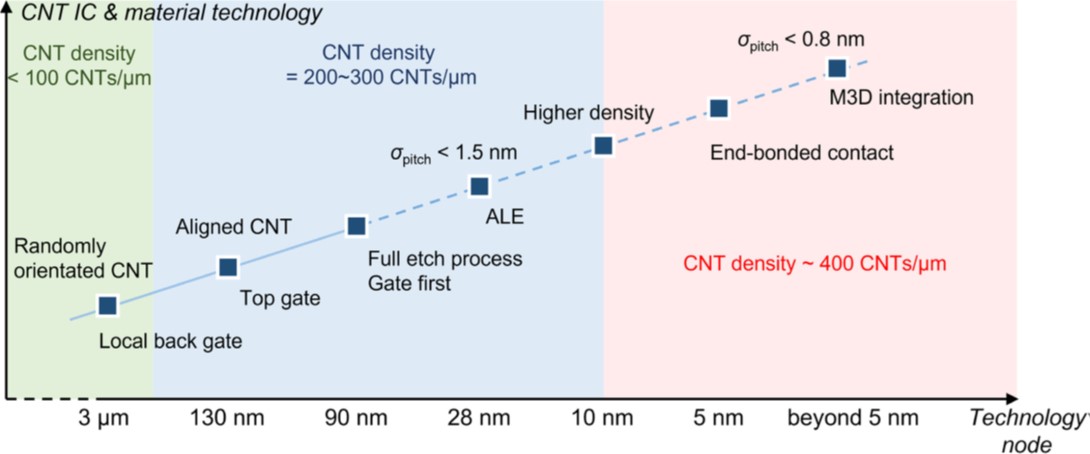 图3:碳基集成电路材料、技术发展路线图