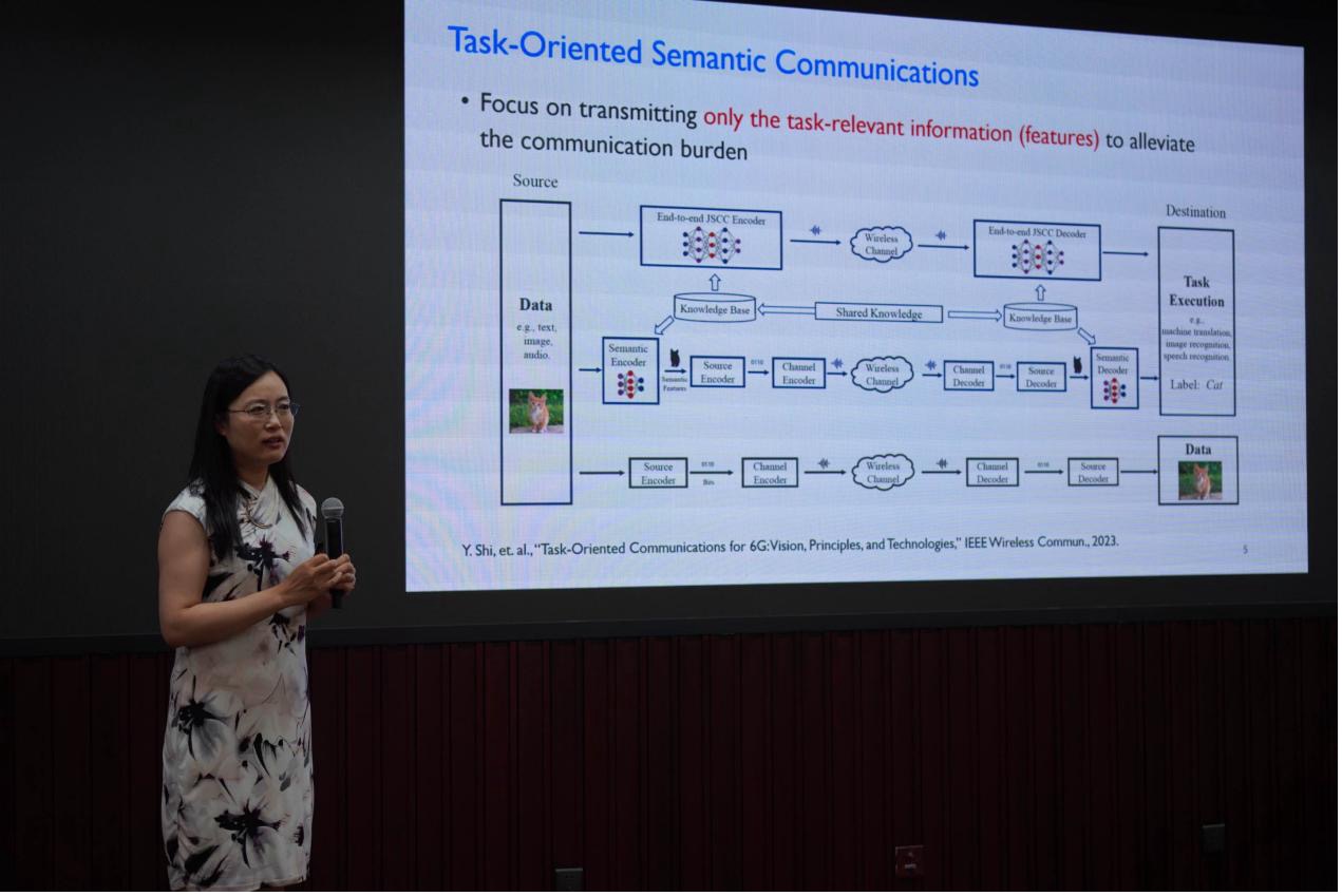 香港中文大学张颖珺教授报告的主题为“Task-Oriented Semantic Communications With Modularized Communication-Learning Co-design”,提出了一种面向任务的语义通信的联合通信和模型训练方法,以适配现有通信系统的模块化设计架构。