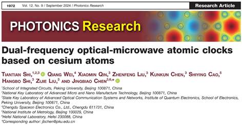 陈景标教授团队和成都天奥电子股份有限公司、浙江法拉第激光科技有限公司、中国计量科学研究院合作,成功实现了一种基于铯原子的双波段光学-微波原子钟,在量子精密测量领域取得重要突破。该工作创新利用铯原子作为量子参考,集成的高端科学仪器可同时输出微波和光学跨波段频率标准,其中,光频原子钟和微波原子钟分别具有优异的短期和长期频率稳定度,扩展了基于铯原子的小型化高性能光频原子钟和实用化微波原子钟的应用范围,为原子钟在可搬运、高性能提升方面的卡脖子攻关提供新方案。相关研究成果以“Dual-frequency optical-microwave atomic clocks based on cesium atoms”为题,于8月29日发表于美国光学学会旗下的《Photonics Research》杂志。