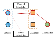 通信系统由信源、信道、信宿构成。单个或多个信源生成数据包,经多信道传至信宿。为保证信息时效性,通过调度信源、信道传输以最小化信宿的信息年龄。在单源模型假设下,通过Multi-armed Bandit强化学习估计变化的信道服务率,调度当前估计传输成功率最高的信道进行传输。多源模型分为信源-信道解耦合调度、信源-信道耦合调度两种情况,前者在选取信道的同时允许独立选取当前具有最高AoI的信源传输;后者综合考虑信源AoI的值、相应信道服务速率进行信源-信道联合调度。