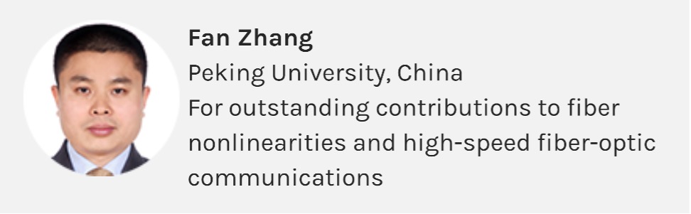 张帆教授因其在光纤非线性与高速光纤通信方面的杰出贡献(For outstanding contributions to fiber nonlinearities and high-speed fiber-optic communications)当选2025年度美国光学学会会士。