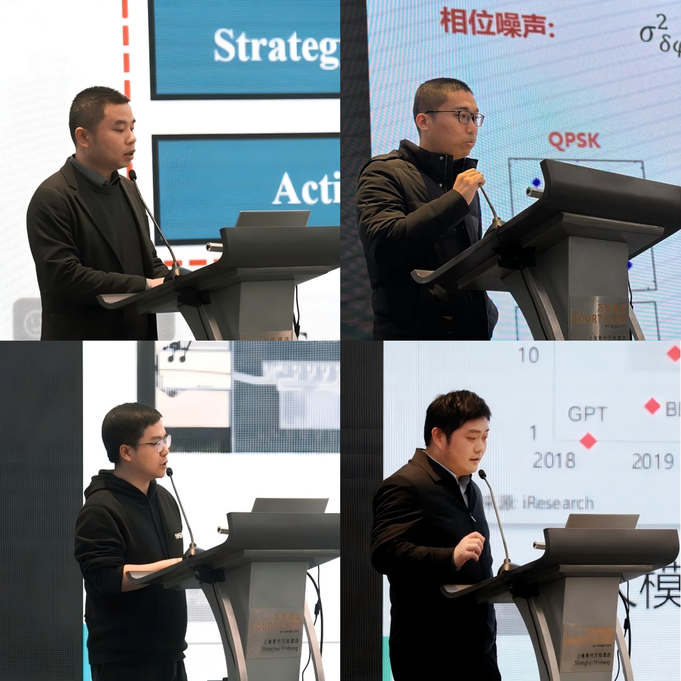 年度工作报告后,诸葛群碧教授、朱逸萧副教授、舒浩文副教授及陆梁军副教授分别以《基于大模型的光网络全生命周期智能体管控现网示范》《克服激光器相位噪声的相干光传输系统》《高性能硅基光电子器件与系统》及《用于大容量数据传输的DWDM系统级芯片》为题,报告了实验室2024年度取得的代表性研究成果。