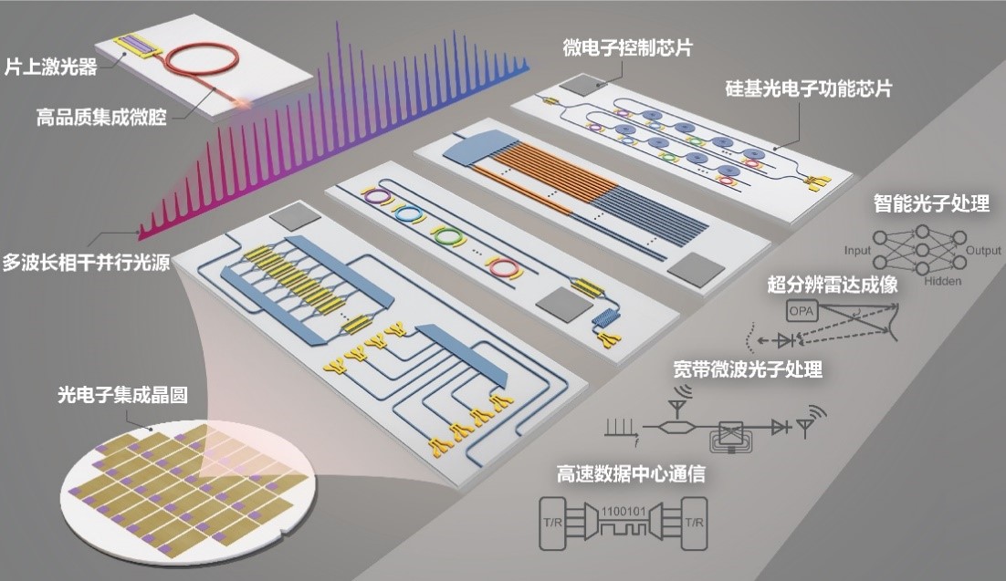 集成微腔光梳驱动的硅基集成光电子片上系统图
