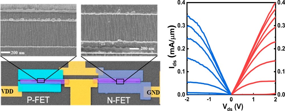 图4:基于阵列碳管的CMOS器件表征