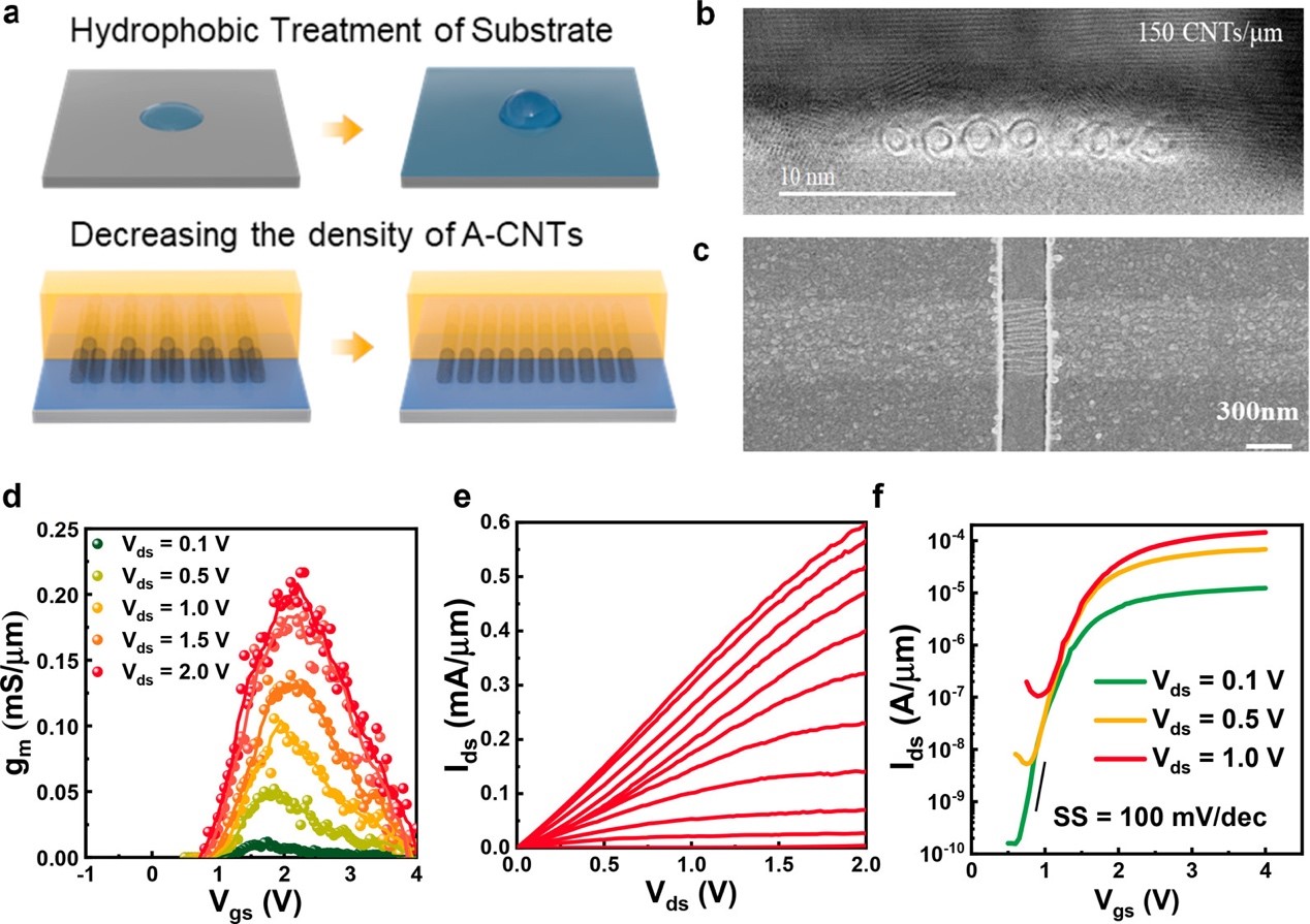 图2:高性能阵列碳管N型晶体管的工艺方案和表征
