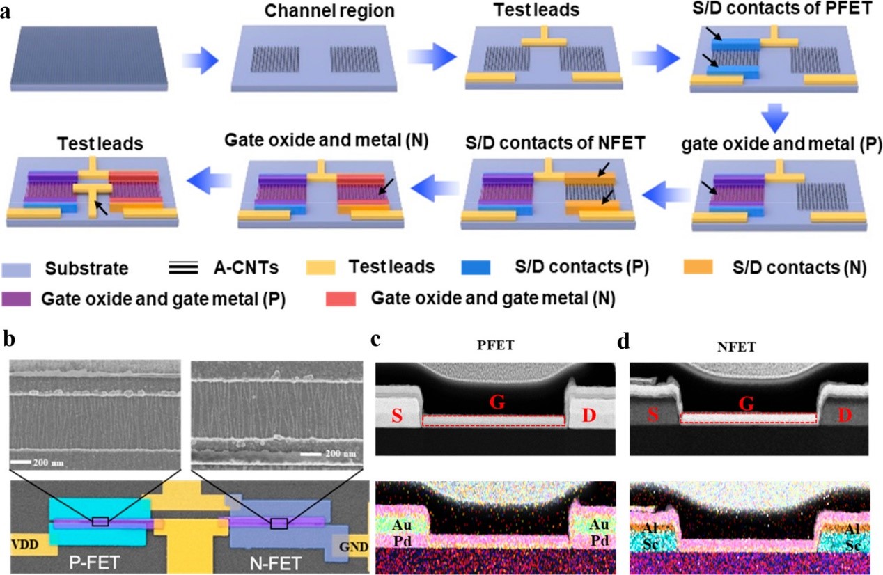 图3:基于阵列碳管的CMOS器件和电路工艺