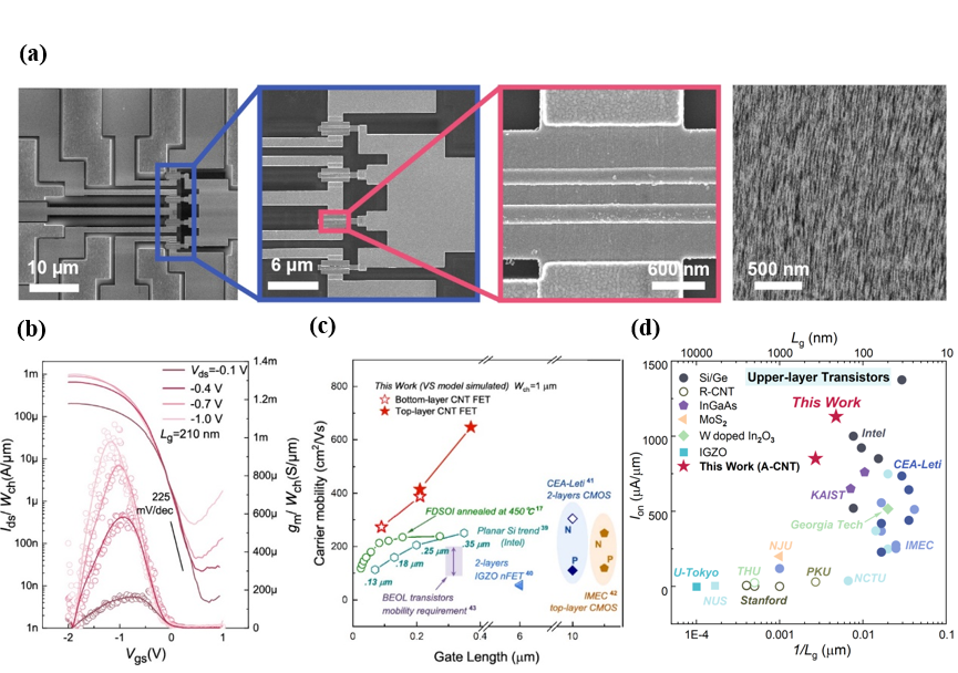 图1:高质量层间工艺与碳管晶体管单片三维集成