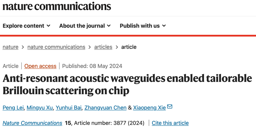 、区域光纤通信网与新型光通信系统国家重点实验室微波光子学研究团队首次提出一种片上反谐振声波导的新范式,实现了对声学模式的灵活操纵与选择,获得了片上声光相互作用关键指标的新突破。2024年5月8日,相关研究成果以“反谐振声学波导赋能片上布里渊散射”(Anti-resonant acoustic waveguides enabled tailorable Brillouin scattering on chip)为题,在线发表于《自然·通讯》(Nature Communications)。