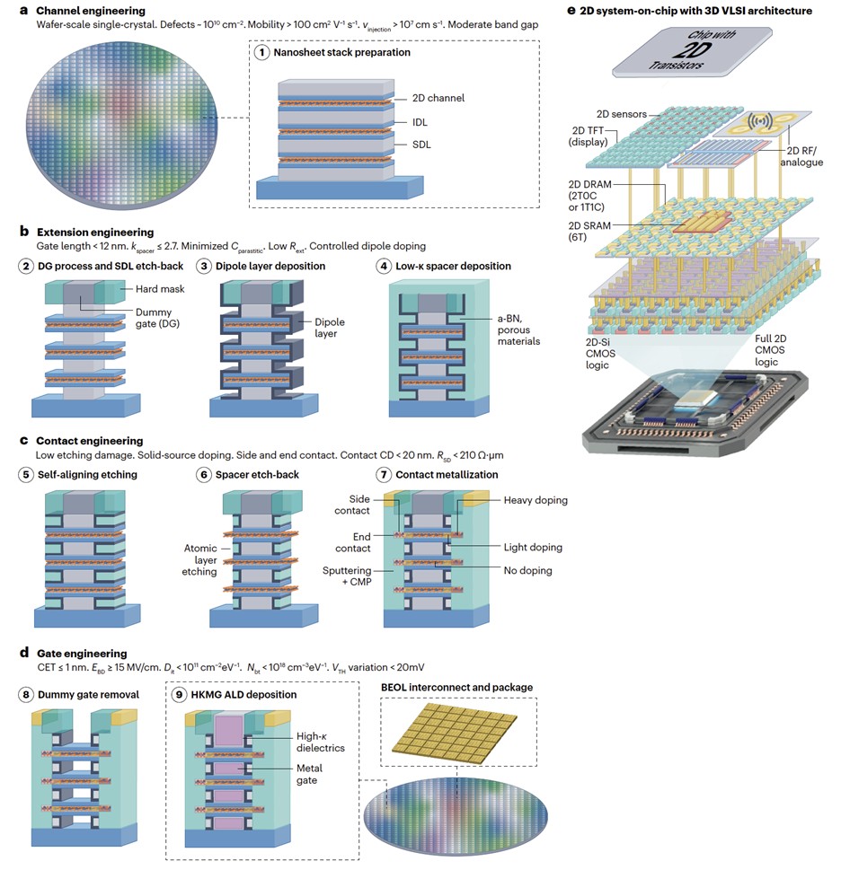这项工作在材料-工艺-器件-系统四个方面为二维电子学从实验室研究到工业的生产制造进行论述和展望,为接下来二维技术迈向半导体试线的产业化发展提供了重要指导。