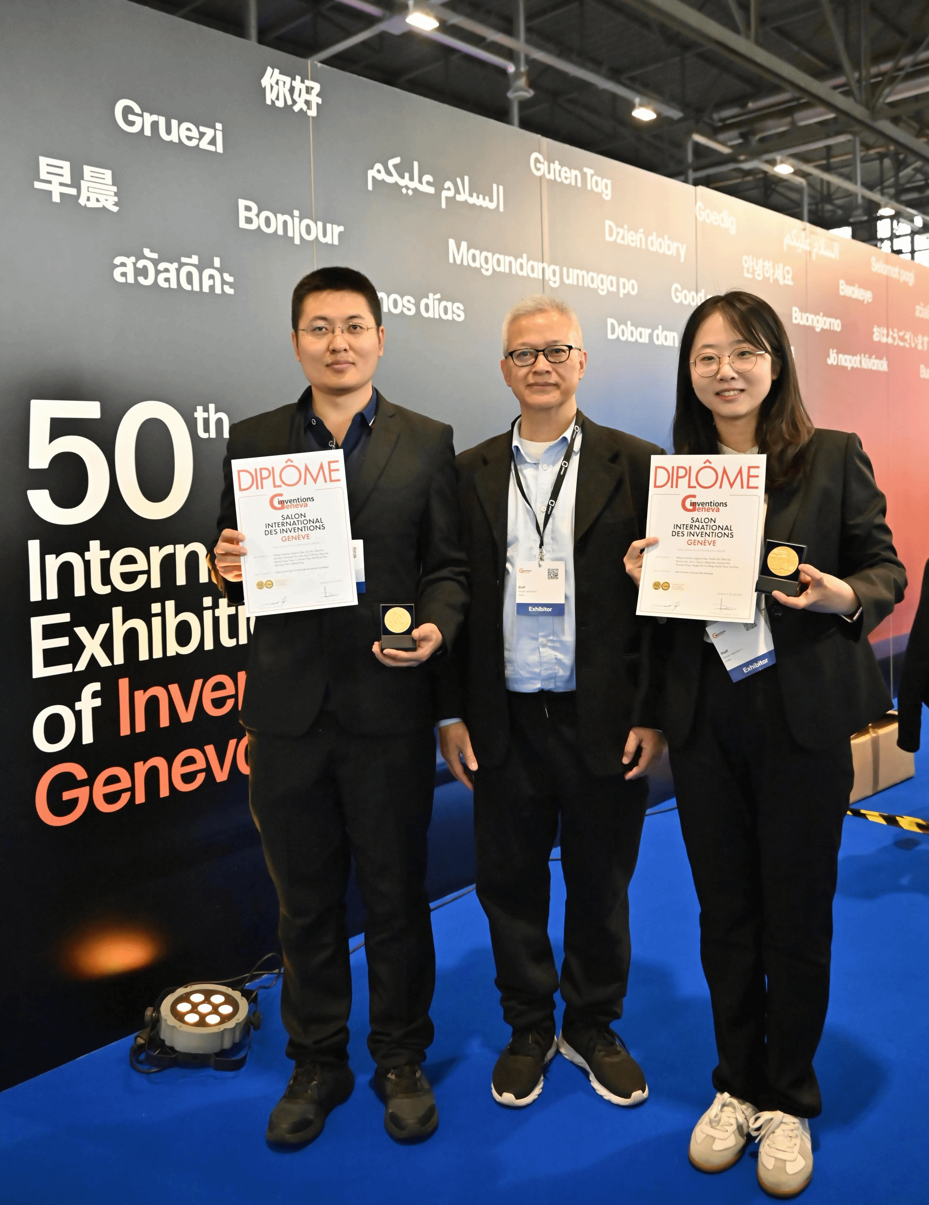 在此次日内瓦国际发明展上,陈景标教授及博士研究生秦晓敏、苗杰,热情地向参观者介绍成果,受到瑞士、沙特阿拉伯、俄罗斯、泰国等各国家与会人员的广泛关注和高度评价。经评审,陈景标教授团队研发的“原子选频激光器”和“大拇指激光器”两项创新成果从全球上千件参展项目中脱颖而出,荣获金奖。这两项金奖成果展现了中国团队在激光稳频技术上的突破性创新,为助力实现我国量子精密测量领域高水平科技自立自强提供了有力支撑。