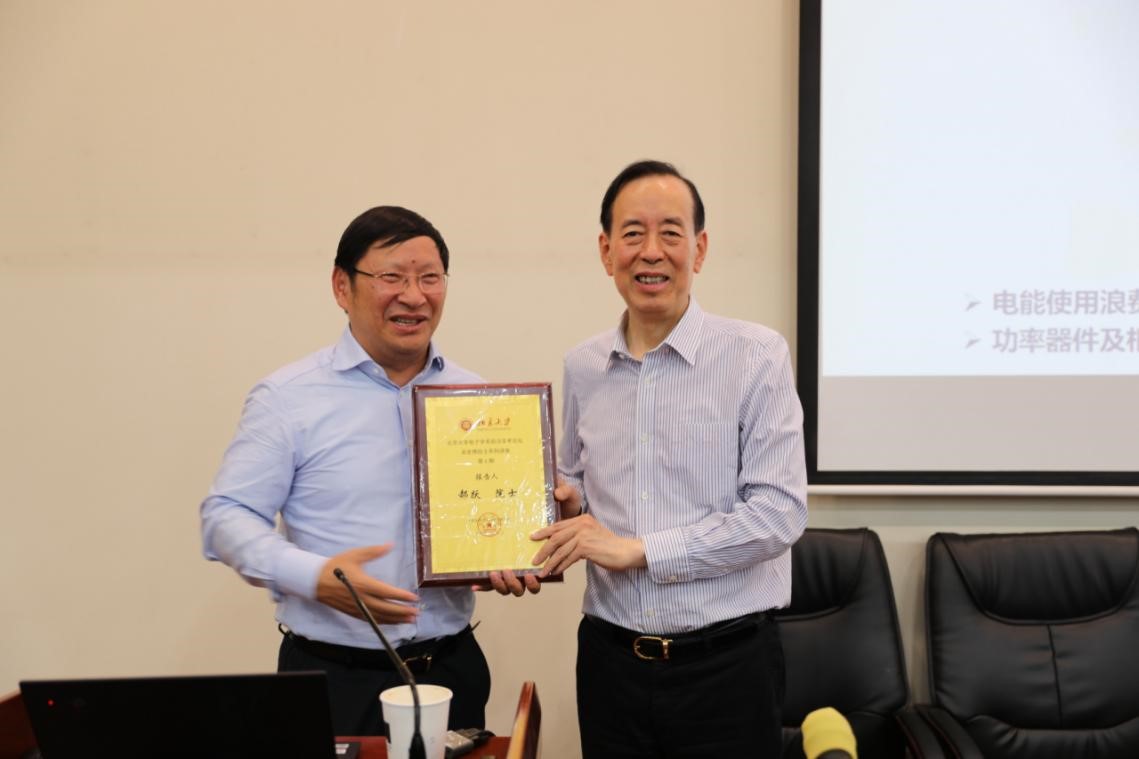 讲座在热烈的掌声中圆满结束,电子学系系主任彭练矛院士为郝跃院士颁发了活动纪念证书,并合影留念。