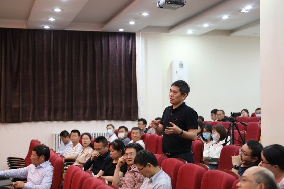 提问环节,老师和同学们结合自己的研究方向,踊跃发言,提出了许多关于超宽禁带半导体材料与器件的理论与工艺方面的问题,郝跃院士一一作了耐心细致解答。