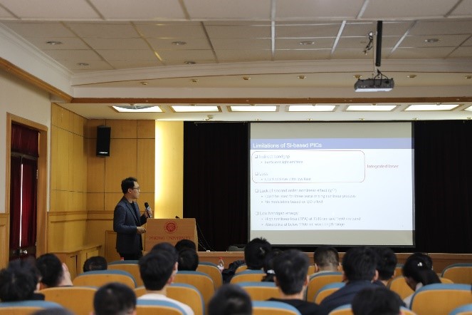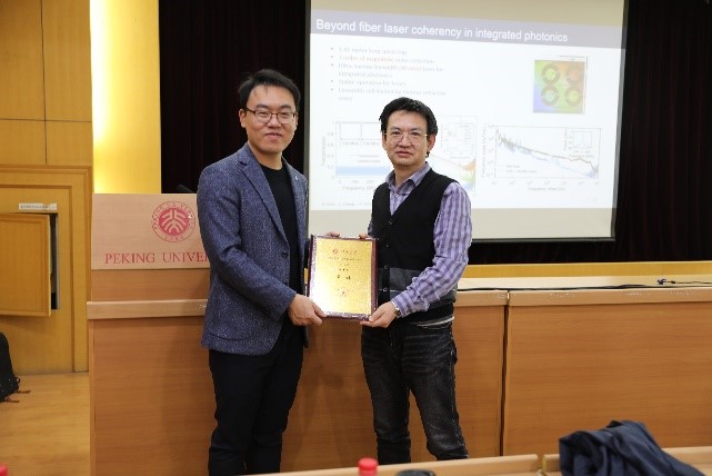 电子学系特聘研究员常林老师做主题为“基于高性能激光器与非线性器件的光子芯片技术”的学术报告。讲座由电子学系王兴军教授主持,60余名师生到场聆听了报告。