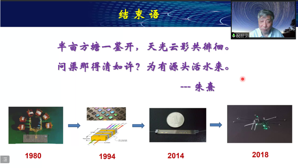 最后,祝院士以朱熹的《观书有感》作为结束语,总结了非线性光学准相位匹配从光学超晶格到光学微结构的发展历程,同时表达了对未来无人机量子网络、光子芯片等光学超晶格应用场景的期待。