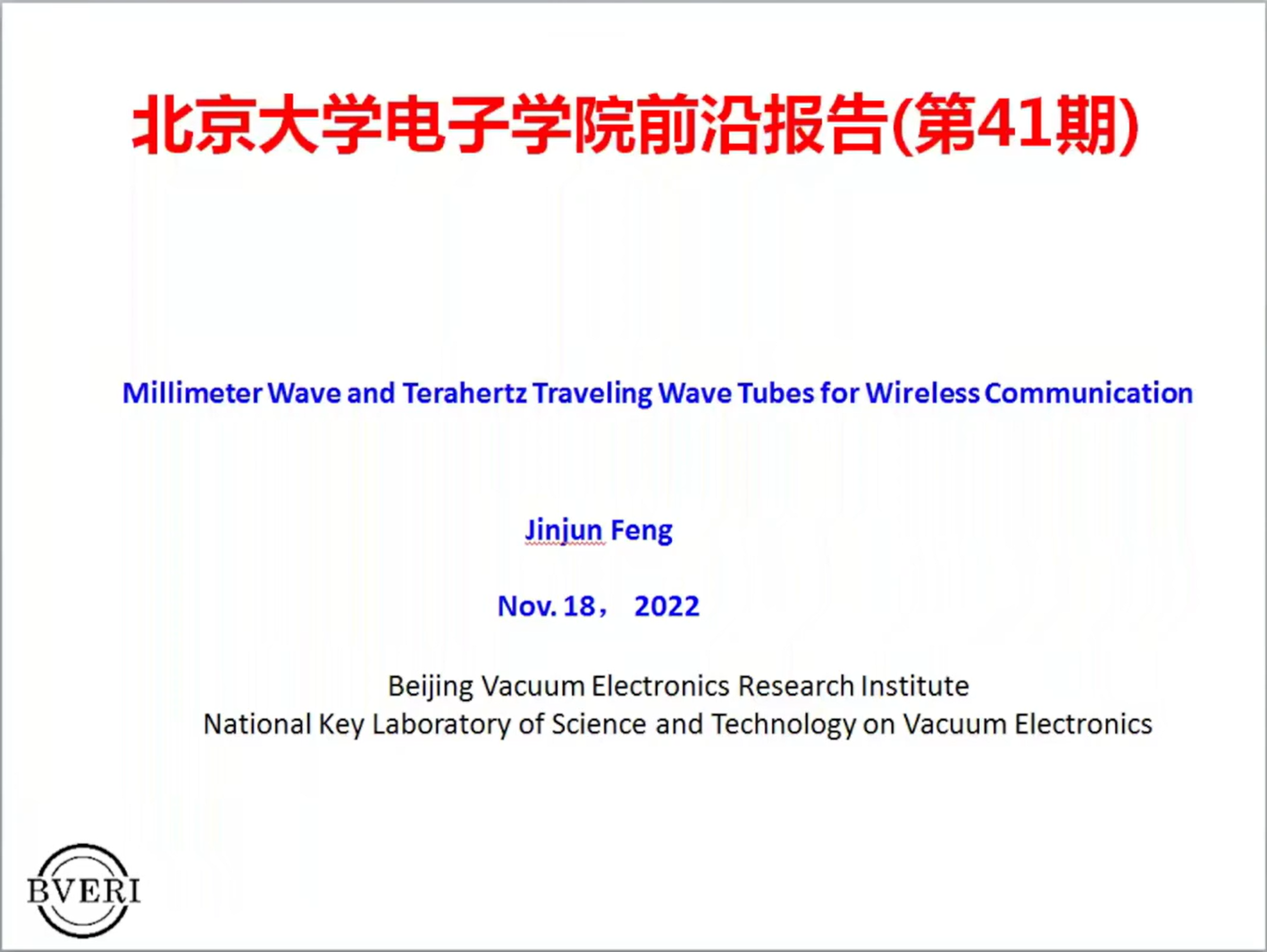 前沿学术论坛第41期讲座通过网络成功举办。本次学术论坛邀请了中国电子科技集团公司第十二研究所副所长冯进军研究员,冯进军研究员以“用于未来无线通信的真空电子器件研究”为主题进行了精彩讲座。本次报告由成人影片