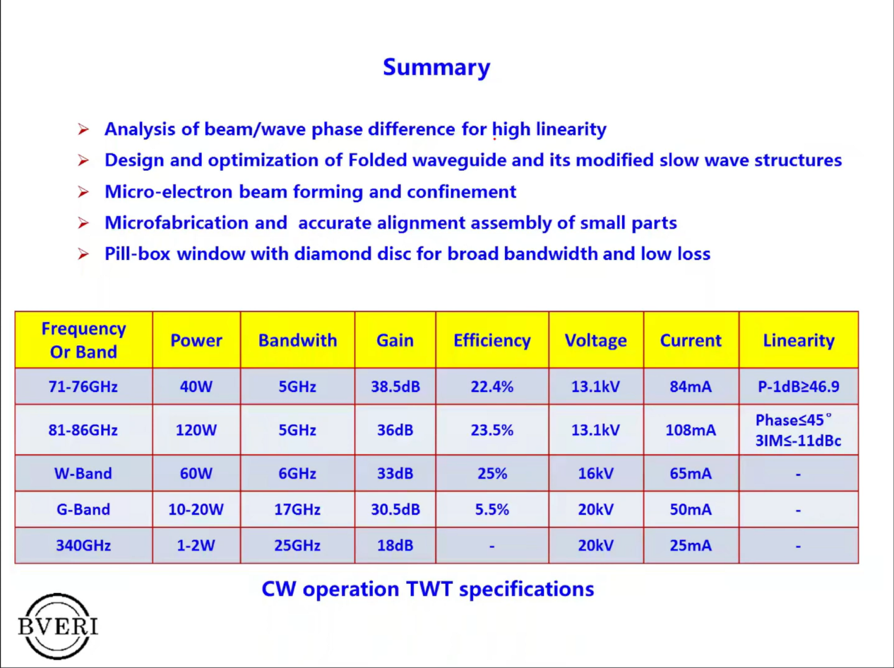在讲座的第二部分,冯研究员详细介绍了各个频段行波管的发展现状及优化方案——运用新的驻波相位差分析方法提高81-86GHz行波管的线性度,利用色散成形实现71-76GHz行波管带宽的展宽,采用微加工和微组装实现行波管小型化。同时,结合210-230GHz行波管,冯研究员介绍了非圆弧折叠波导、AlN陶瓷微型衰减器及复合金刚石盒型窗的实际应用。