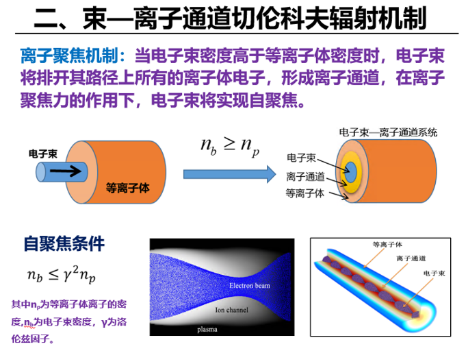 电子束-等离子体系统作为一种基于全新机制的太赫兹辐射源,具有高功率、高效率和频率广泛可调等特点,同时能实现无外加磁场的自聚焦传输。它能够承受大电流注入,并避免尺寸共振效应的限制,具有广阔的研究前景。根据电子束密度和等离子体密度的相关关系,可以将其分为束-粒子通道切伦科夫机制、束-等离子体尾场共振机制以及具有低密度双电子束斜入射的双电子束交叉振荡机制。