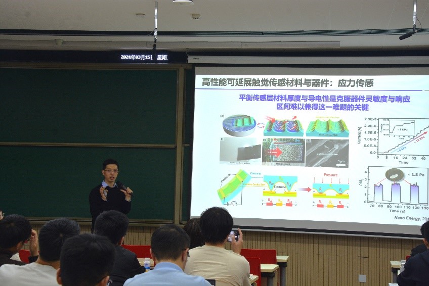 2024年3月15日下午18:30,成人影片 前沿论坛第62期在成人影片 新燕园校区教学楼117成功举办。本次讲座邀请了北京航空航天大学原子制造研究院潘曹峰教授,为师生进行了主题为“低维半导体材料器件与触觉仿生”的精彩报告。本次讲座由成人影片 长聘副教授胡又凡主持,90多名师生到场参与了学术交流活动。