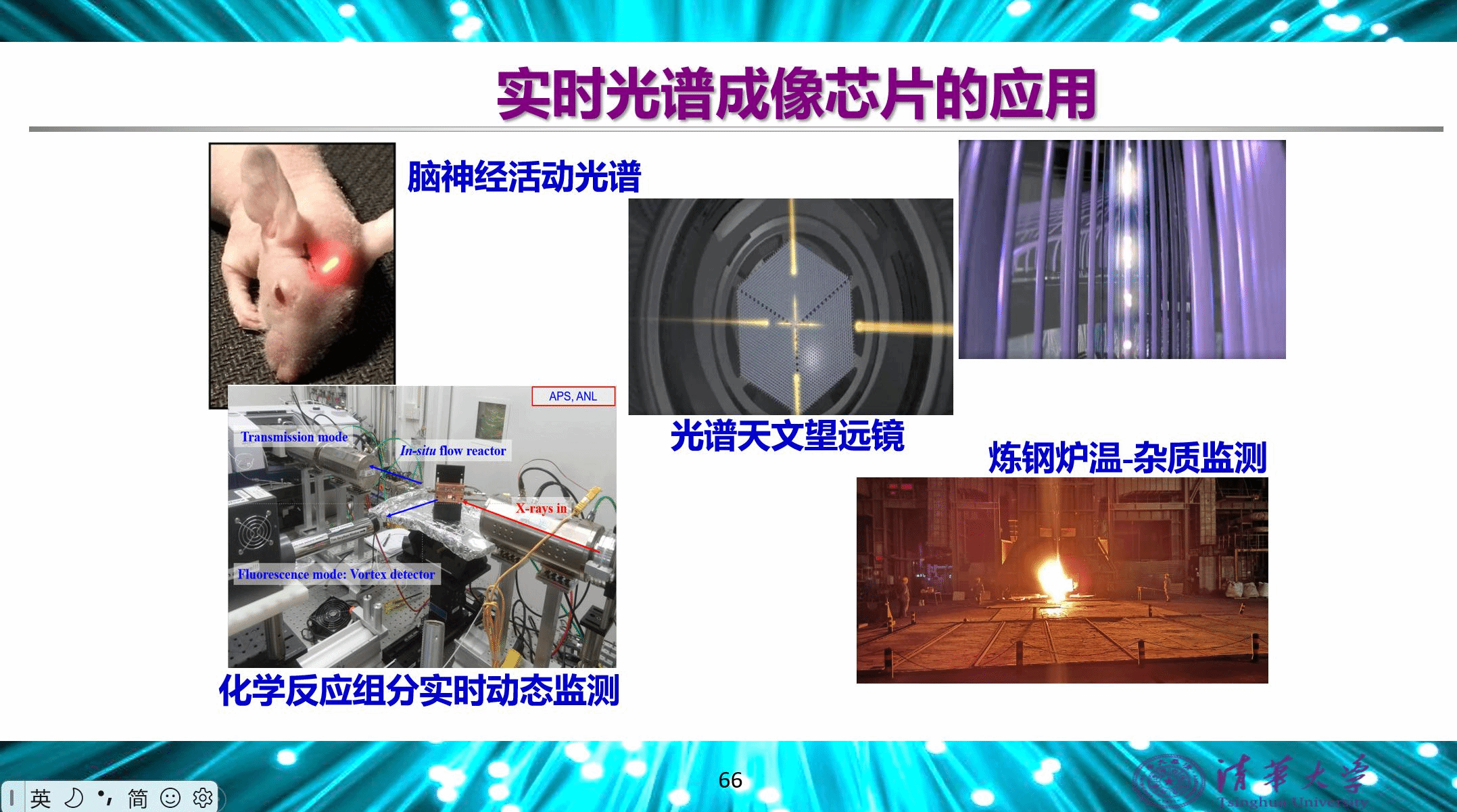 黄教授通过多项光电子芯片的研发实例,详细介绍了自由电子辐射芯片、实时光谱成像芯片、光控声学奇异点芯片、光学轨道角动量辐射芯片以及光量子态产生与操控芯片的最新研究进展。这些芯片通过创新的微纳结构设计,如双曲超材料、光子晶体超表面、纳米悬臂梁微腔等,实现了自由电子辐射、光谱成像、声子传感等前沿功能展示。其中,实时光谱成像芯片的研究成果已成功转化为产业应用,被广泛应用于自动驾驶、环境监测、物质检测、光谱天文观测以及光谱工业动态控制等多个领域。此外黄教授特别强调了学科交叉的重要性。例如,微纳光电子学与真空电子学的结合为自由电子辐射芯片的进一步研究提供了更广阔的空间;与生物医学的融合,则为实时光谱成像芯片在脑神经活动监测和病理诊断中的应用开辟了全新视野。