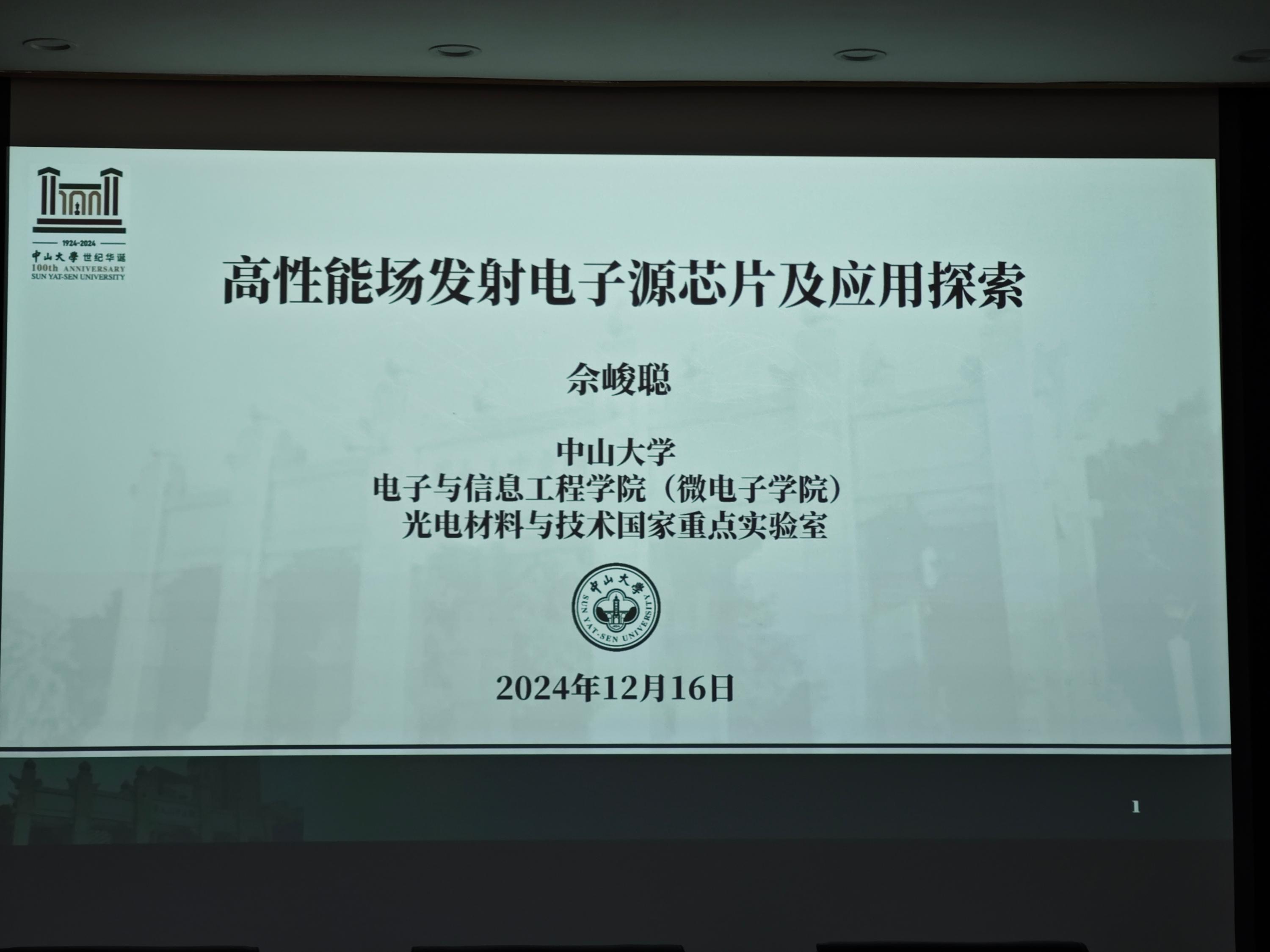 2024年12月16日,成人影片 前沿论坛第80期成功举办。中山大学电子信息与工程学院(微成人影片 )院长佘峻聪教授进行了题为“高性能场发射电子源芯片及应用探索”的精彩报告。本次报告由成人影片 副院长魏贤龙主持,50多名师生参与了讲座。